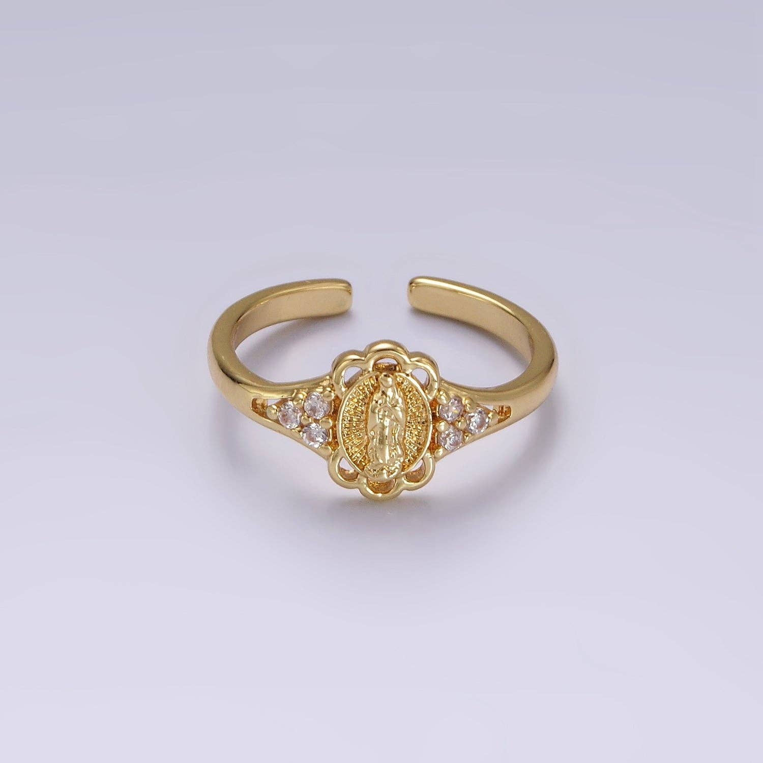 14K Gold Filled Triple CZ Mother Mary Lady Guadalupe Rounded